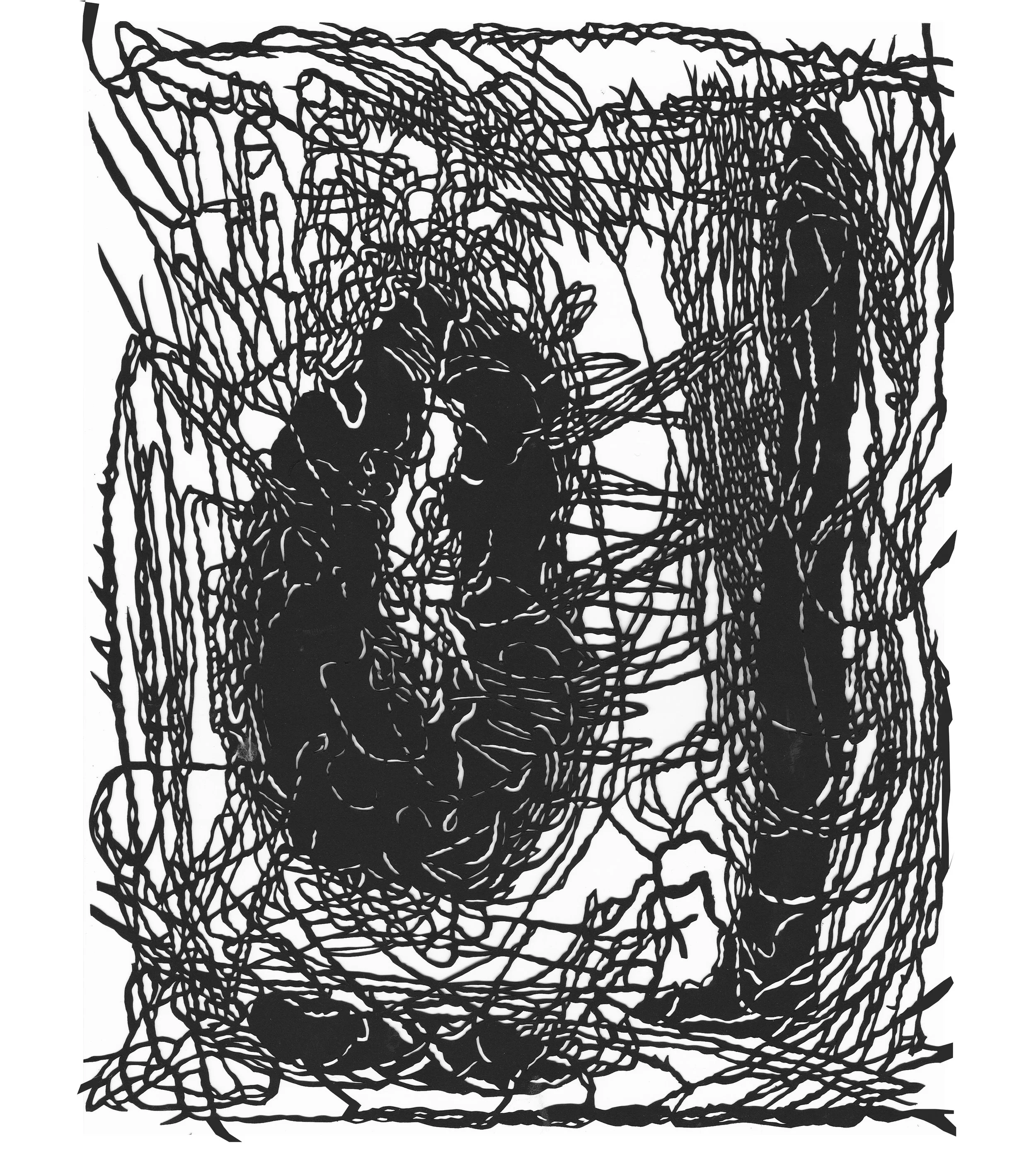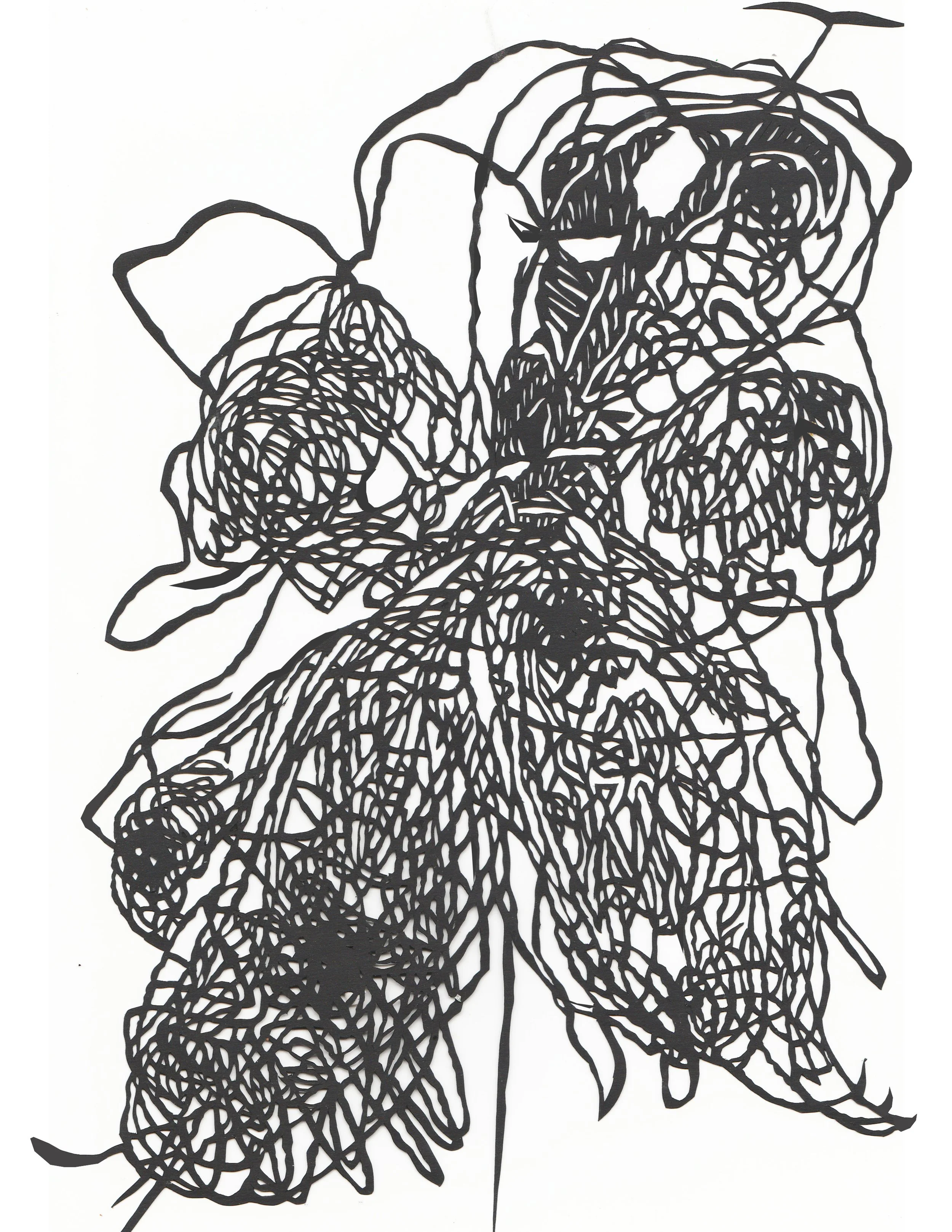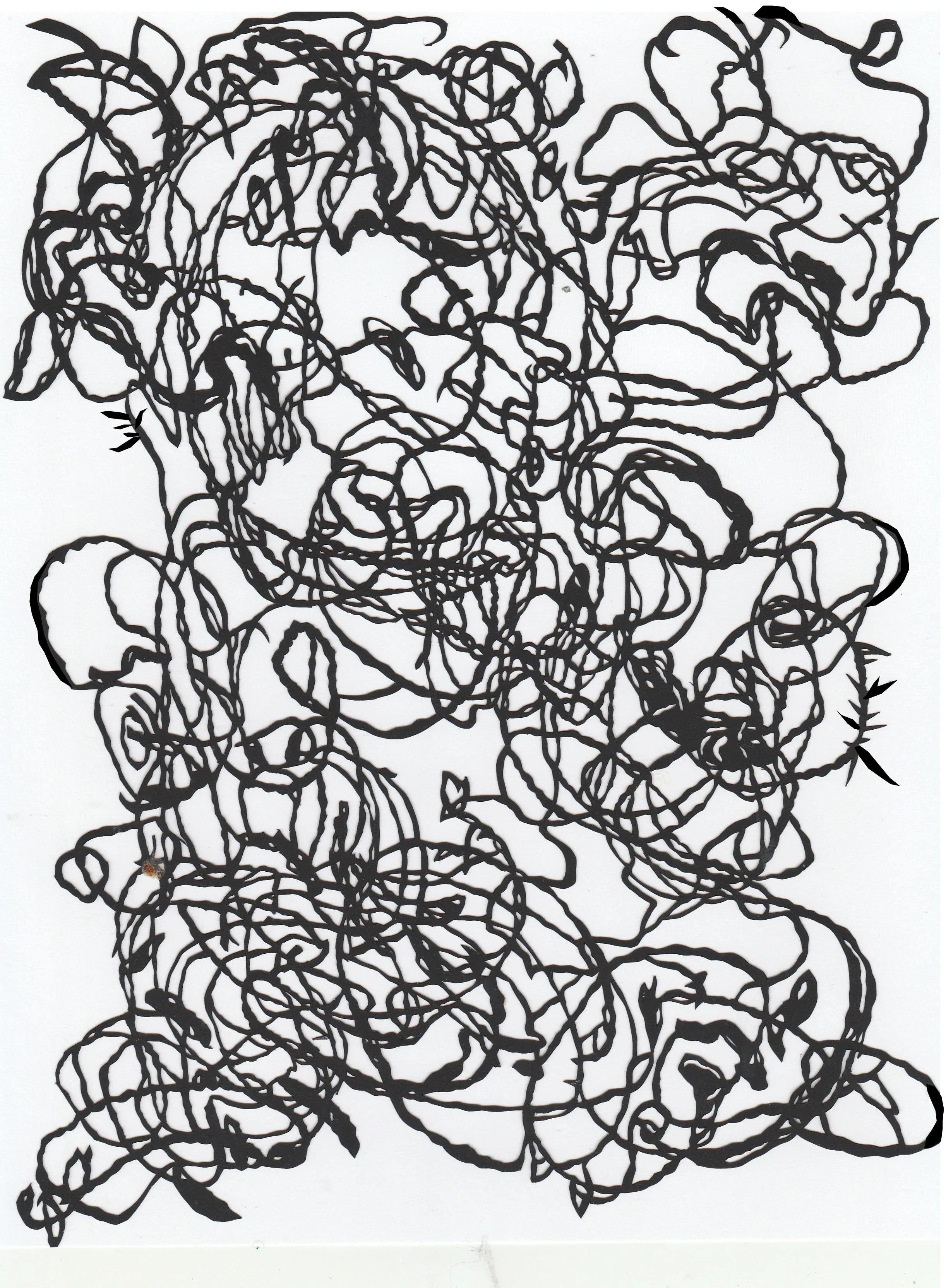 Yvetta Fedorova created a wall size grid of twenty-four 8.5”X11” cutouts for her exhibit “What’s Left Of Her” at DVAA gallery.