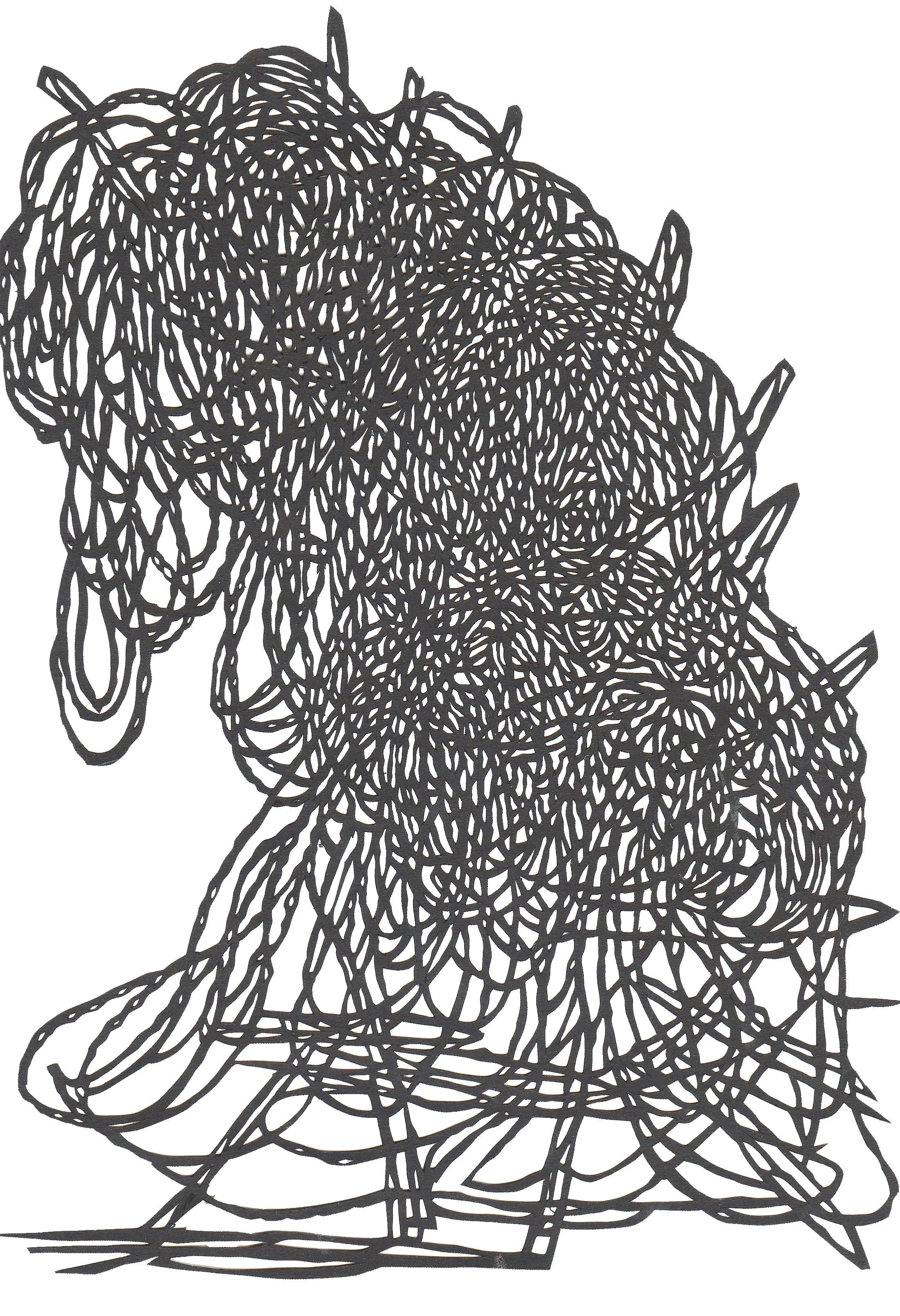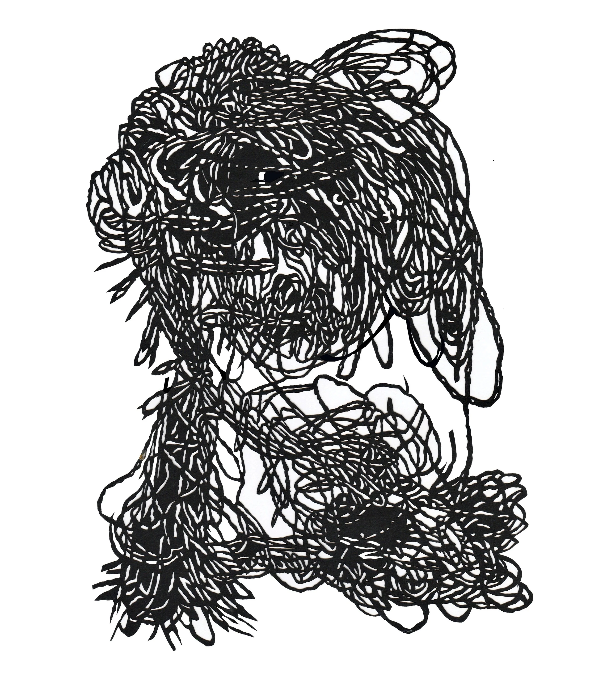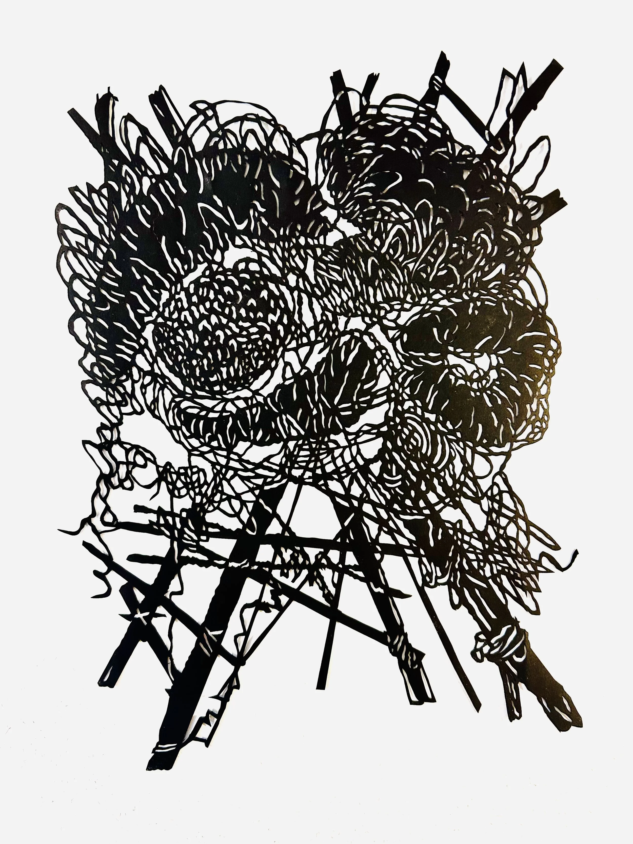 Yvetta Fedorova created a wall size grid of twenty-four 8.5”X11” cutouts for her exhibit “What’s Left Of Her” at DVAA gallery.